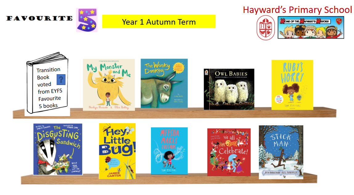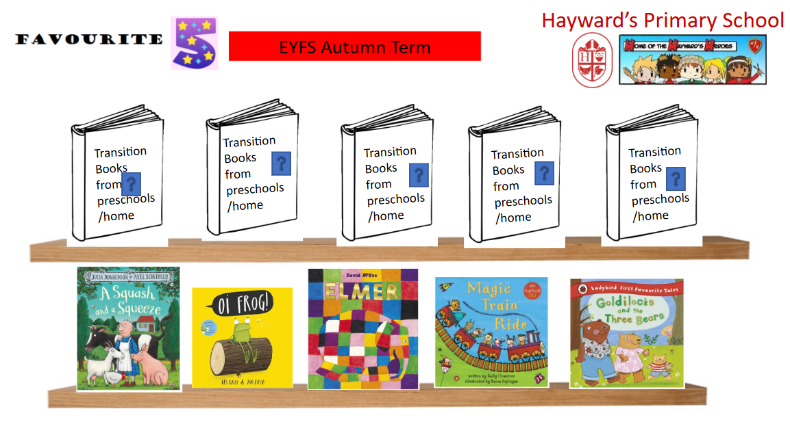 In Reception, Year 1 and Year 2 we have 5 favourite books which read over and over again in order to develop children's engagement and love of books, vocabulary, and their understanding, comprehension and excitement!